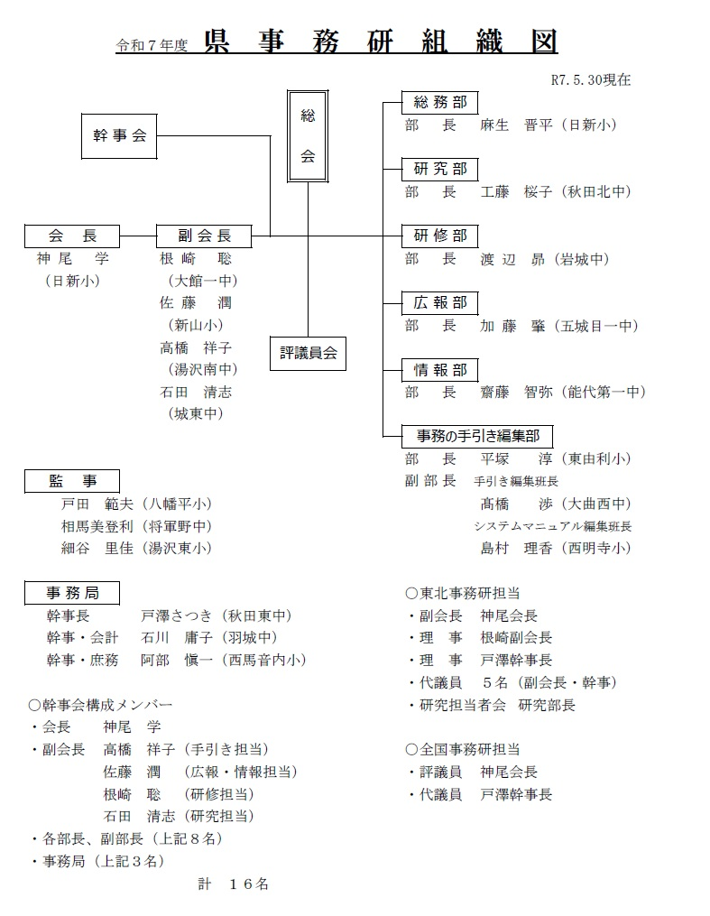 幹 事 石川 庸子 (羽城中) 阿部 愼一 (西馬音内小)